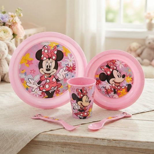 Disney Minnie Mouse Kinder Geschirr-Set 5 teilig Becher Teller Schüssel Besteck